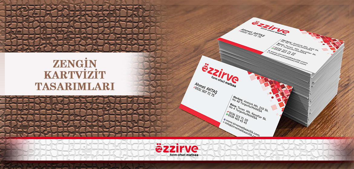 - Kabartma Laklı Kartvizit : Kartvizitinizin istediğiniz bir bölümünü kabartmalı olarak seçebileceğiniz kabartma laklı kartvizitler, organize matbaa kalitesinde hazırlanıyor. Standart kartvizit fiyatlarına göre farklılık gösteren kabartma laklı kartvizitler, Turgutlu Özzirve Form Ofset Matbaa' da sizin belirlediğiniz tasarım doğrultusunda basılıyor. Kabartma laklı kartvizitlerde ayrıca kabarık olmasını istediğiniz bölüm de fiyatta farklılık oluşmasına neden oluyor. Gofreli kartvizit olarak da bilinen kabartma laklı kartvizitlerinizi de oval veya düz kesim olarak tercih edebiliyorsunuz.